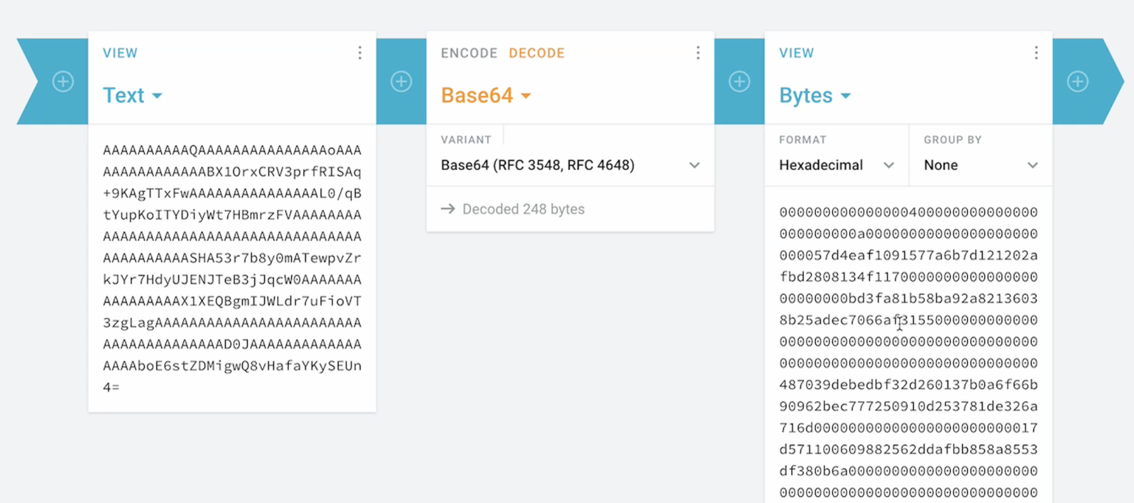 Then, take this copied message to an online Base 64 -> Hex decoder. We suggest using: https://cryptii.com/pipes/base64-to-hex