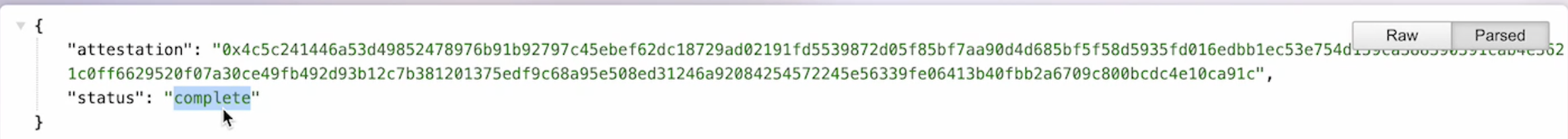 This outputs the attestation which should be marked as “completed” as shown in the image. Copy the attestation. Now you are ready to relay.