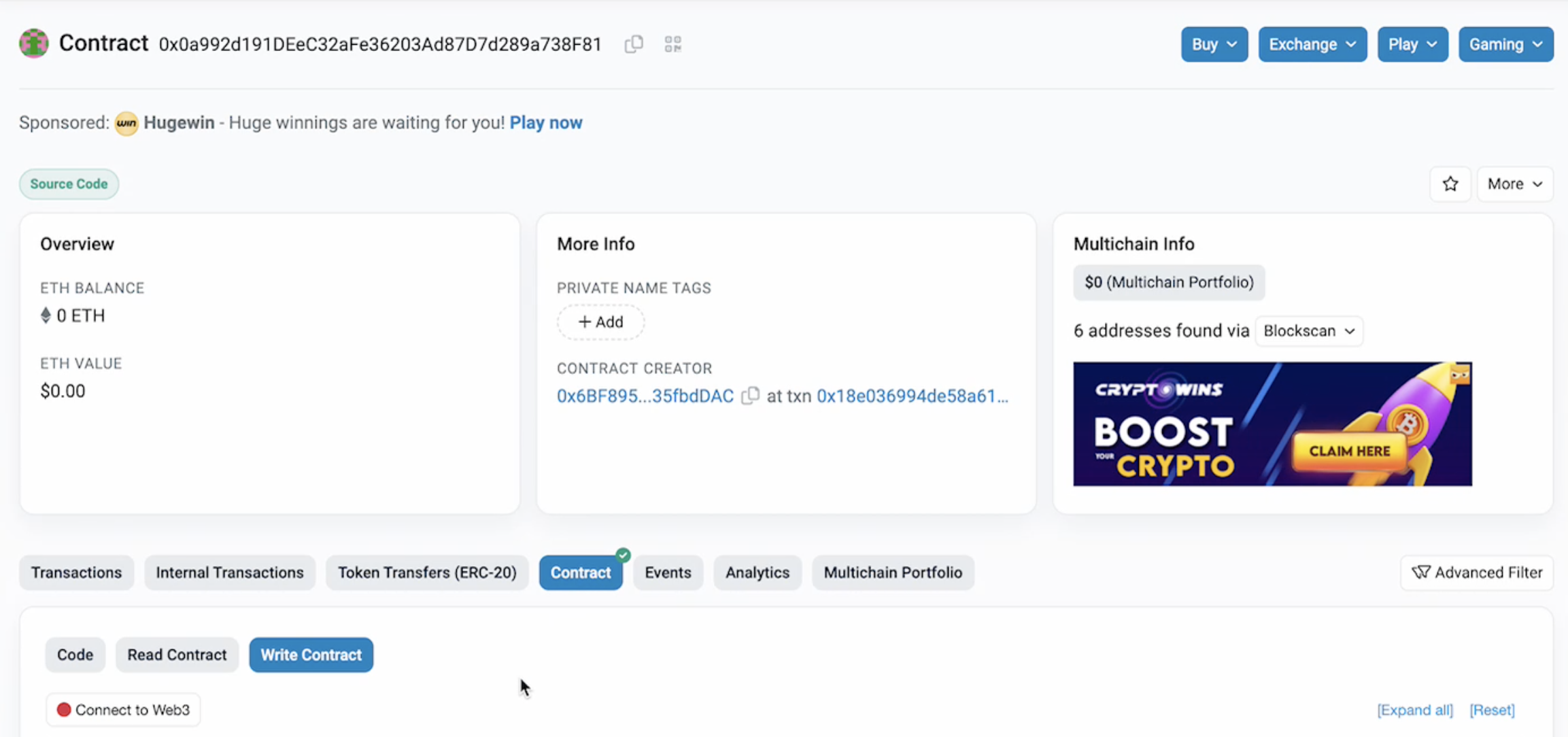 Click on contract, write contract, which will then prompt you to connect to Web3 and connect your wallet.
